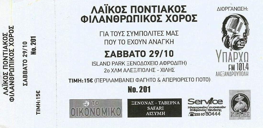 διοργάνωση της προχθεσινής "λαϊκό/ποντιακής φιλανθρωπικής βραδιάς" με